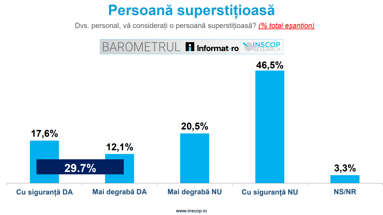 La presentación gráfica de los datos está disponible aquí: BARÓMETRO Informat.ro – INSCOP Research – ”Rumanía entre Magia y Esoterismo”
