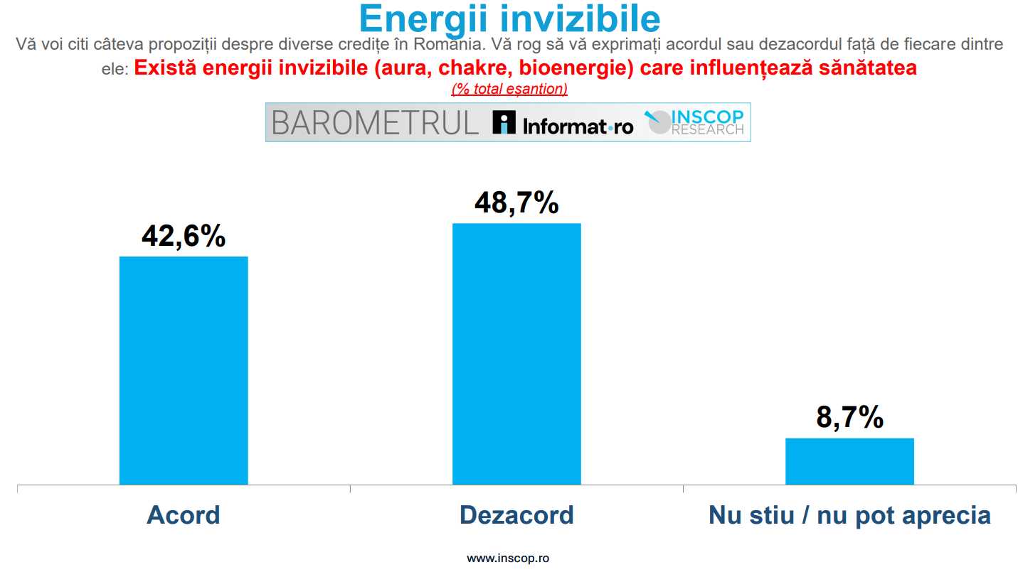 La présentation graphique des données est disponible ici : BAROMÈTRE Informat.ro – INSCOP Research – ”La Roumanie entre Magie et Ésotérisme”