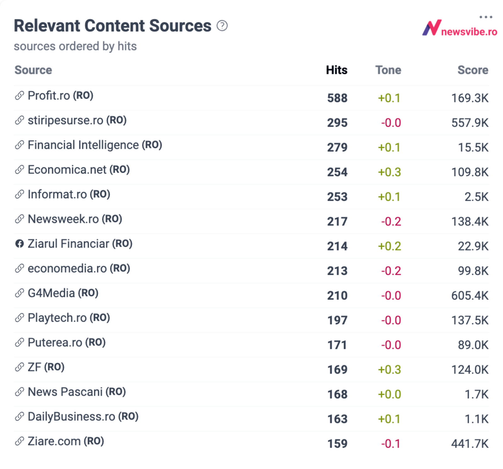 Grafico NewsVibe. La classifica delle fonti web e social media rilevanti che hanno pubblicato il maggior numero di articoli e post su temi economici nell'ultima settimana