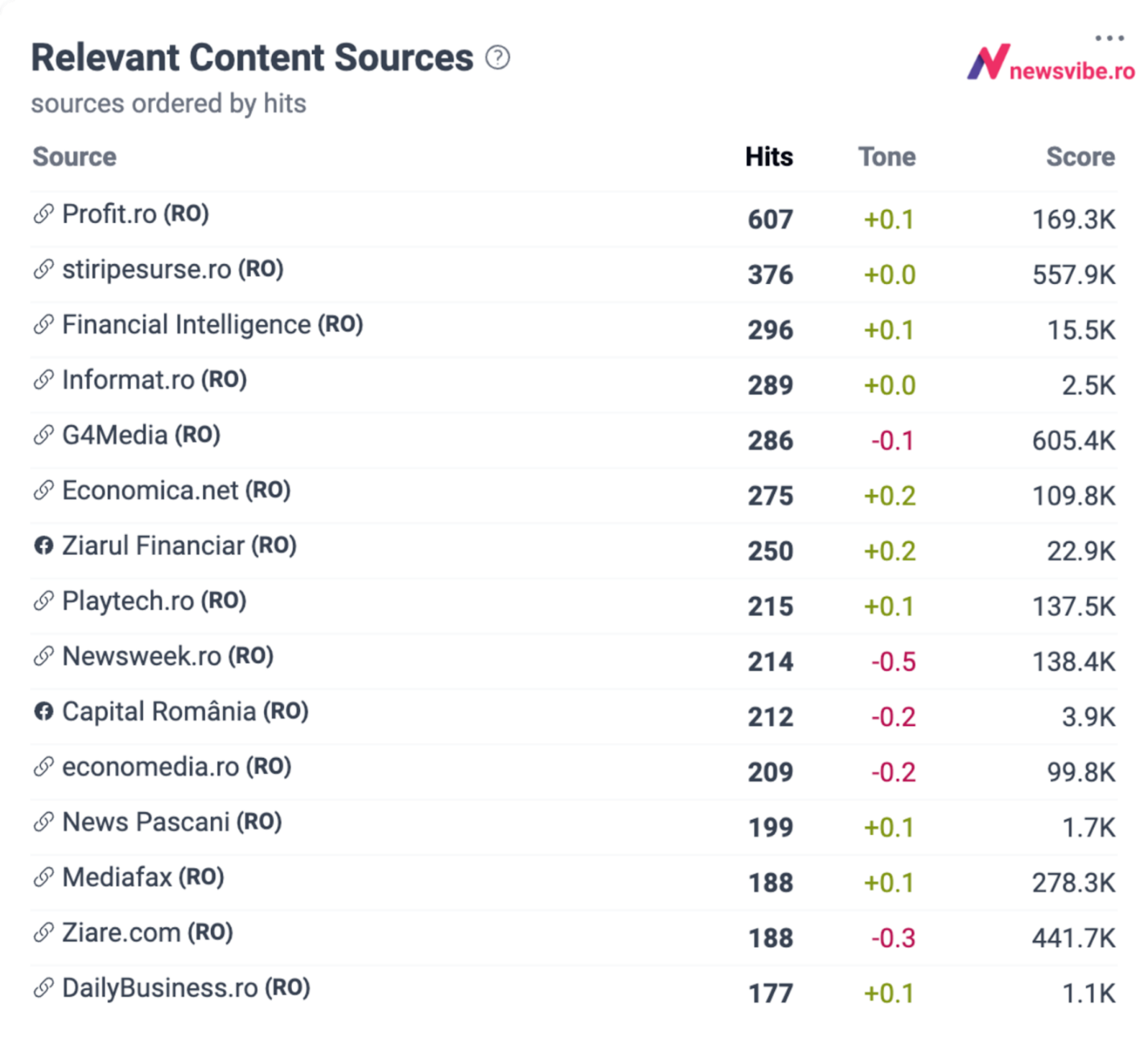 Grafico NewsVibe. La classifica delle fonti web e social media rilevanti che hanno pubblicato il maggior numero di articoli e post su temi economici nell'ultima settimana