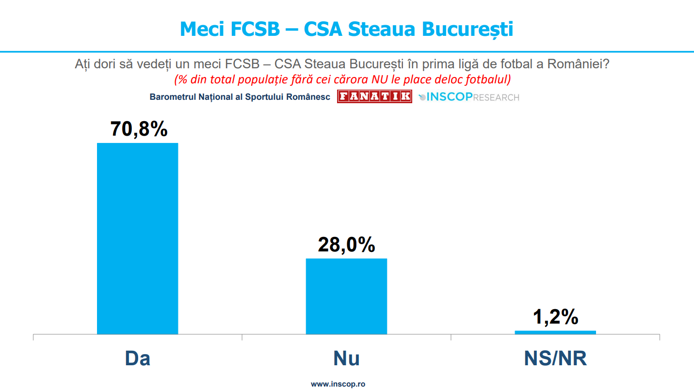 データのグラフィック表示はここで入手できます: ルーマニアのスポーツに関する全国バロメーター - ファナティック – インスコップリサーチ。第3章: FCSB 対 CSA ステアウア・ブカレスト