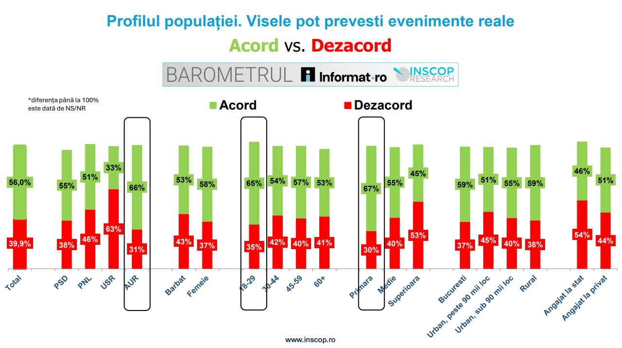 Согласны с утверждением в основном: избиратели AUR, молодые люди до 30 лет, лица с начальным образованием. Против утверждения в частности: избиратели PNL и USR, лица с высшим образованием.