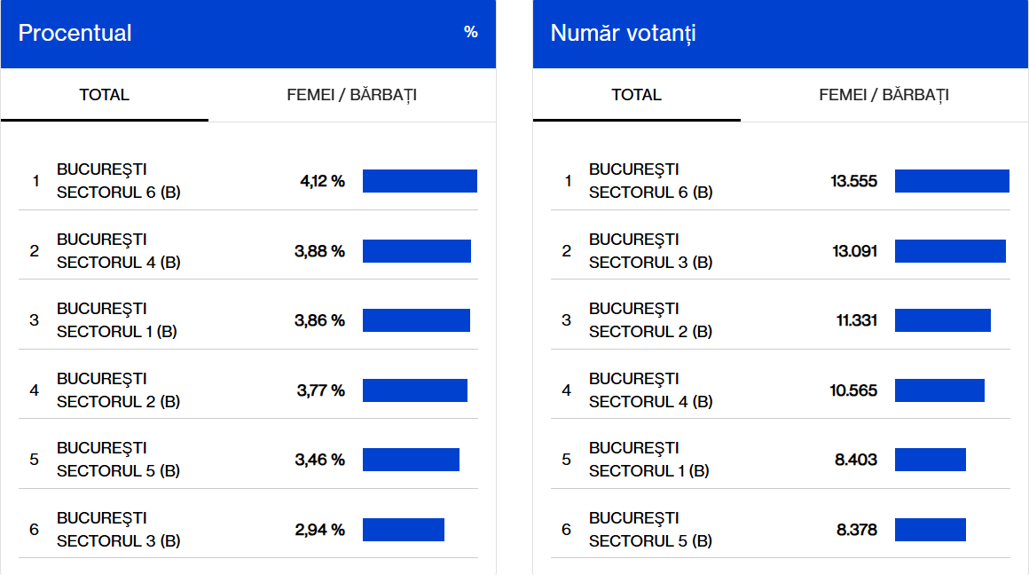 В первые три часа после открытия избирательных участков в Бухаресте проголосовали 65.323 бухарестца.