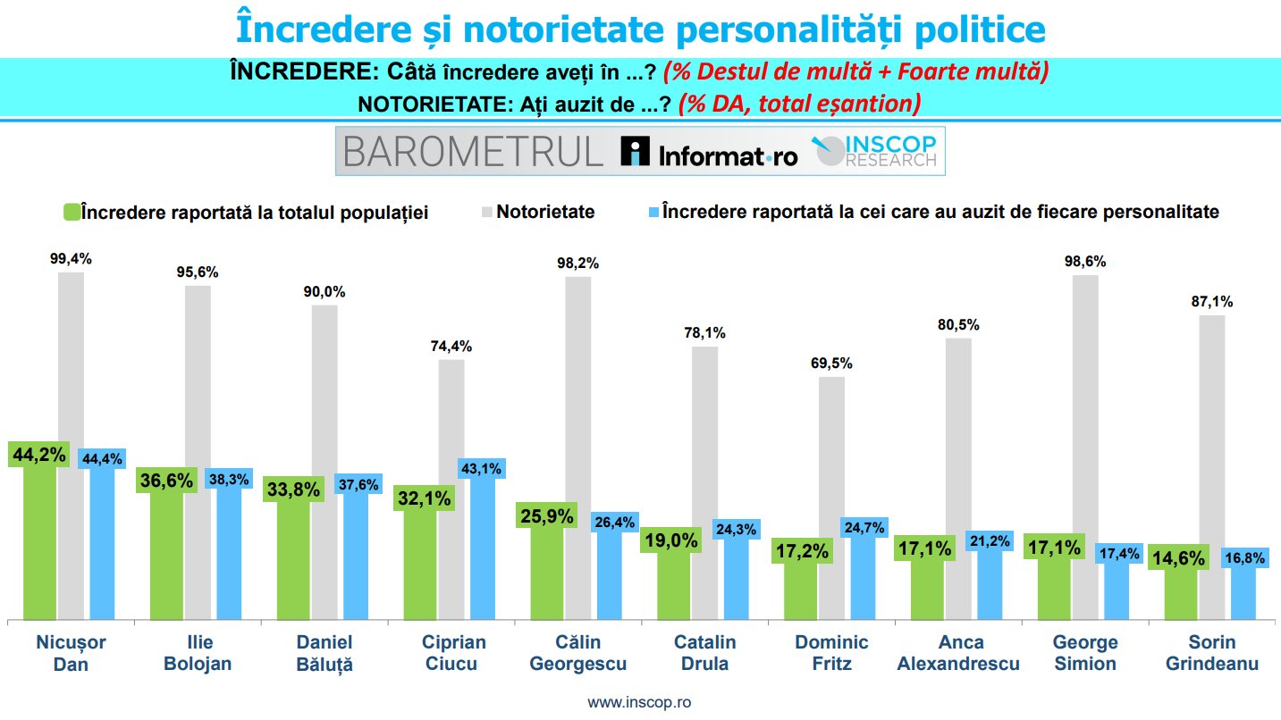 BAROMETRUL Informat.ro INSCOP notorietate incredere personalitati politice Nicusor Dan sondaj